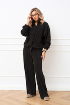 Брюки прямого силуэта с центральной застёжкой на молнию и петлю-пуговицу.