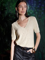 Джемпер с V вырезом и коротким рукавом из хлопковой пряжи с пайетками