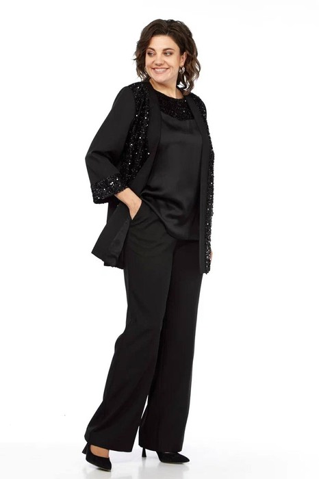 Перед выполнен из отделочной ткани "пайетки" на атласной подкладке. Обработаны отрезные планки.