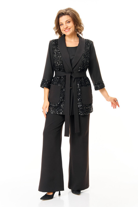 Комплект женский состоит из жакета, топа и брюк.