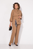 Брюки расширенные к низу типа "палаццо" с центральной застёжкой на молнию и петлю-пуговицу. В боковых швах карманы с отрезным бочком. Пояс притачной с резинкой по задней части пояса.