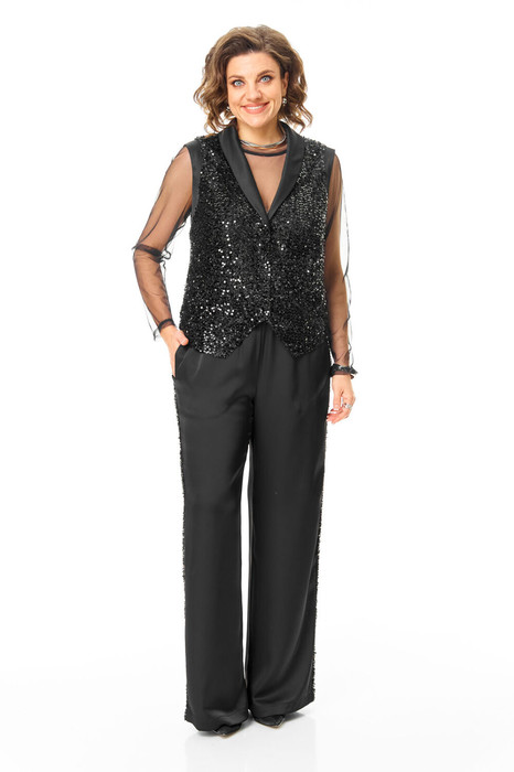 Комплект женский состоит из жилета, топа и брюк.