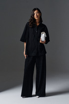Топ свободного покроя из полотна сетка. Горловина округлой формы, окантована. Рукав длинный.