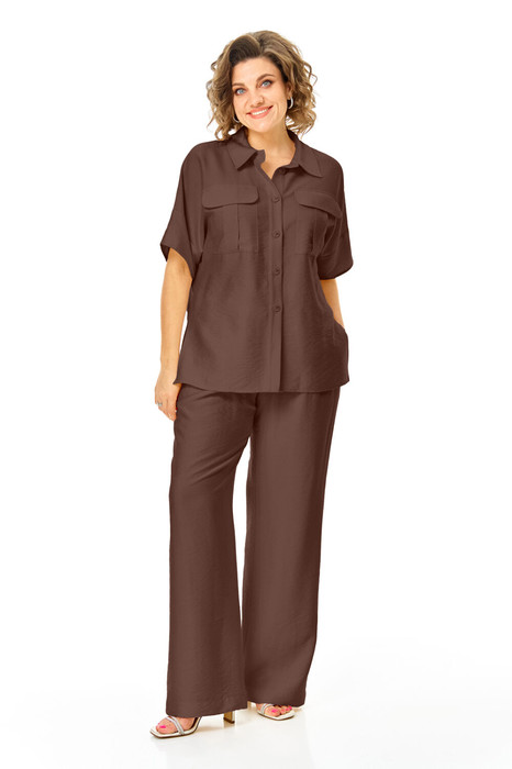Брюки свободные прямого силуэта. На передних половинках выполнены по две односторонние складки. Пояс притачной на резинке с втянутым шнуром. В боковых швах карманы.