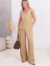 Свободные брюки палаццо на эластичном поясе изо льна с вискозой