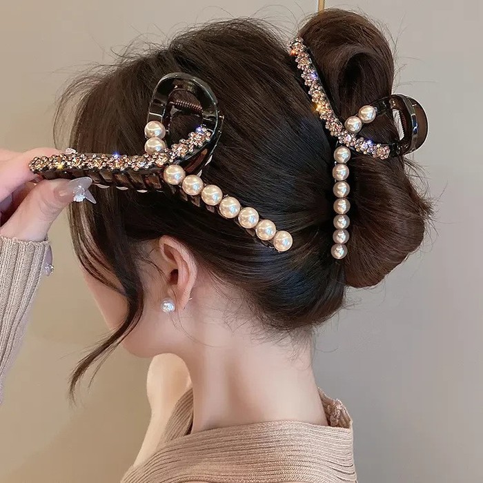 Совместные покупки Сургут Косметика и парфюмерия Прочий макияж — Краб для волос петелька со Стразами и Бусинами, 13 см.