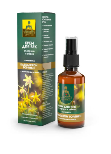 • Кавказская горянка содержит уникальные биологически активные вещества, которые стимулируют естественный процесс регенерации кожи, улучшая тонус кожи вокруг глаз.