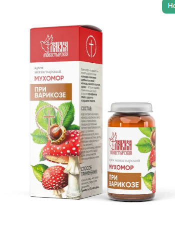 Совместные покупки Сургут Товары для здоровья Бальзамы, мази — Крем монастырский мухомор «При варикозе», стекло, 30 мл, «Монастырская лавка»