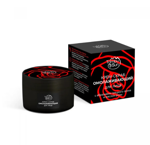 Омолаживающий крем-скраб для лица содержит масляную вытяжку тамбуканской грязи, которая эффективно стимулирует процесс регенерации, насыщает кожу необходимыми микроэлементами и обладает противовоспалительным действием.