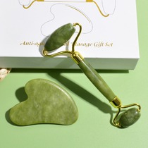 Нефритовый набор для массажа Гуаша (Ролик ГЛАДКИЙ + скребок)