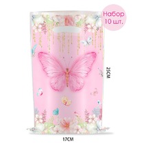 Набор пакетов подарочных 10 штук 25*17 см. Бабочка
