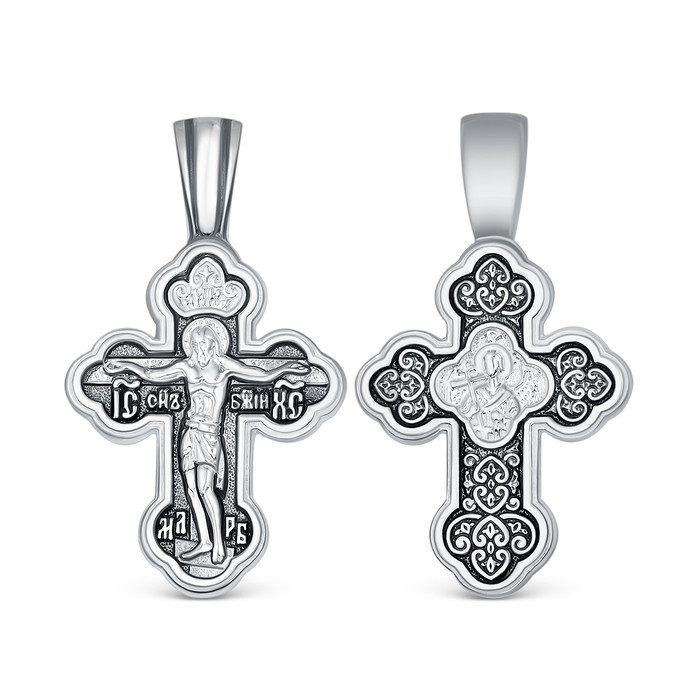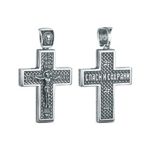 Совместные покупки Сургут Ювелирные украшения и бижутерия Подвески — Крест двусторонний из чернёного серебра - Спаситель, Ангел-Хранитель 3,1 см Г-16