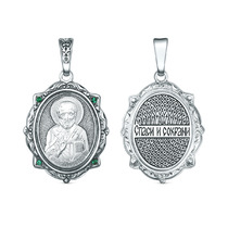 Подвеска из чернёного серебра с фианитами - святой Николай Чудотворец п-040ччНЧ