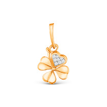 Подвеска из золочёного серебра с фианитами и родированием - Четырёхлистник, клев