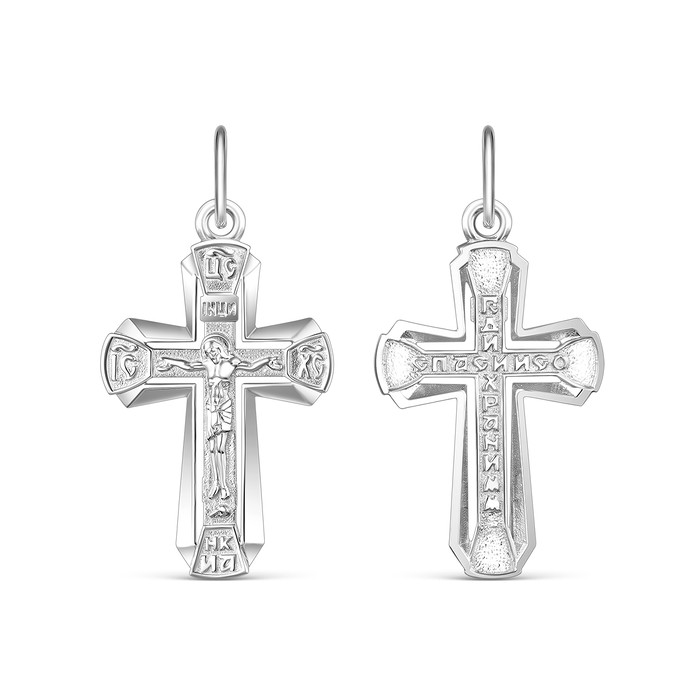 Совместные покупки Сургут Ювелирные украшения и бижутерия Подвески — Крест из серебра родированный - Спаси и сохрани 3,4 см 925 пробы К3-593р