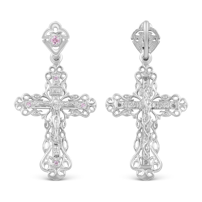 Совместные покупки Сургут Ювелирные украшения и бижутерия Подвески — Крест из серебра с фианитами родированный - 4 см 925 пробы К3-251р 221