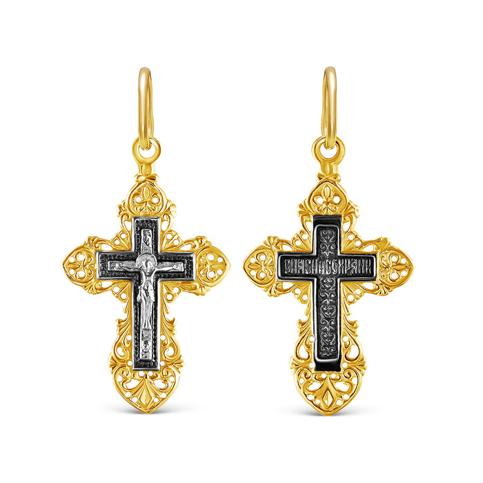 Совместные покупки Сургут Ювелирные украшения и бижутерия Подвески — Крест из золочёного серебра с чернением - 3,2 см 925 пробы К3-255чз