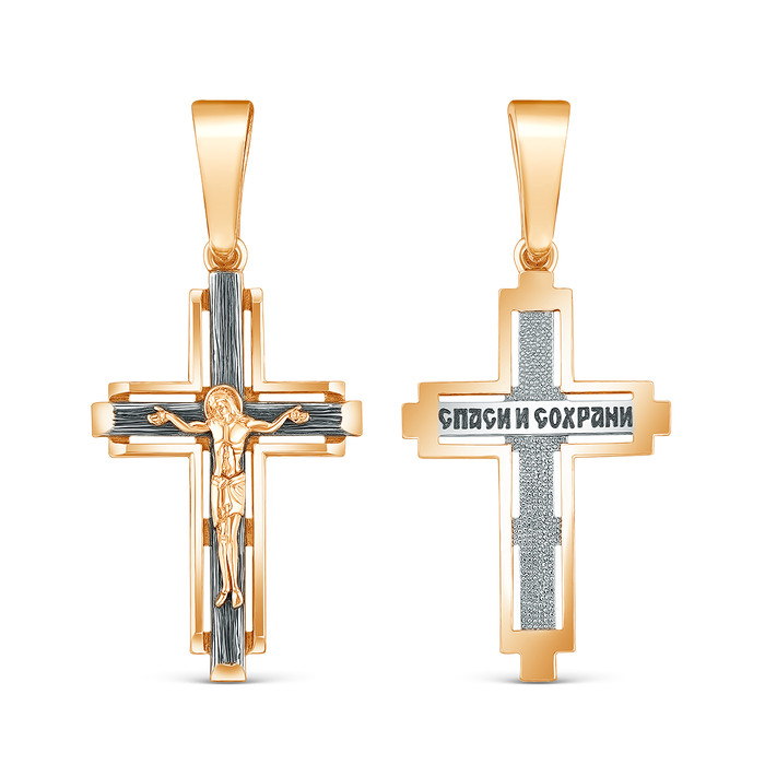 Совместные покупки Сургут Ювелирные украшения и бижутерия Подвески — Крест из золочёного серебра с чернением - 4,7 см 925 пробы 3-287чз