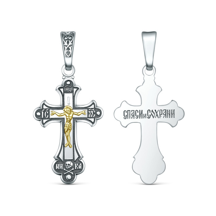 Совместные покупки Сургут Ювелирные украшения и бижутерия Подвески — Крест православный из чернёного серебра с золочением - Спаси и сохрани, 3,4 см 0