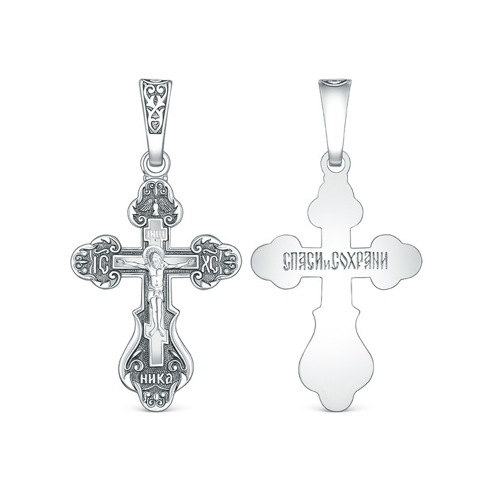 Совместные покупки Сургут Ювелирные украшения и бижутерия Подвески — Крест православный из чернёного серебра - Спаси и сохрани, 3,5 см 00-0021-2