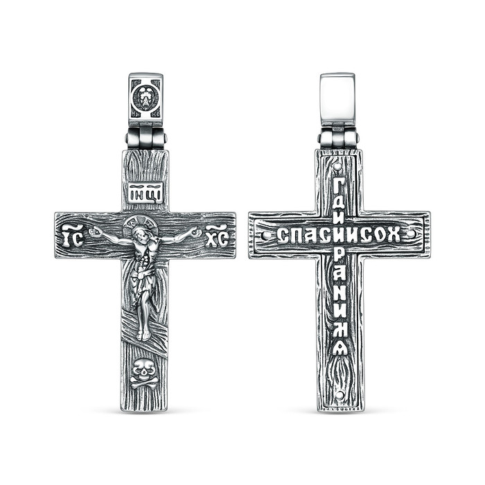 Совместные покупки Сургут Ювелирные украшения и бижутерия Подвески — Крест православный из чернёного серебра - Спаси и сохрани, 4 см 925 пробы Кр-105