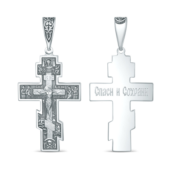 Совместные покупки Сургут Ювелирные украшения и бижутерия Подвески — Крест православный из чернёного серебра - Спаси и сохрани, 5,3 см 00-0080-2