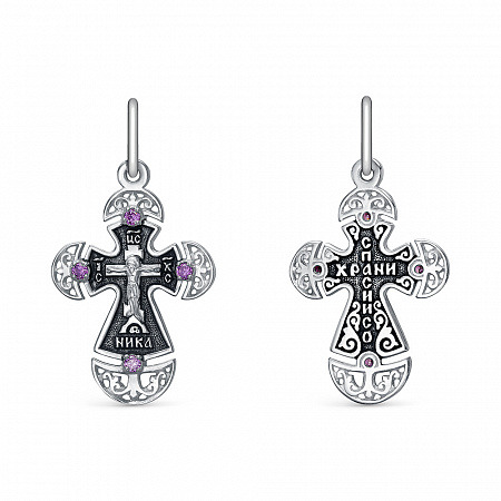 Крест с фианитом выборочно черненный серебро 925*