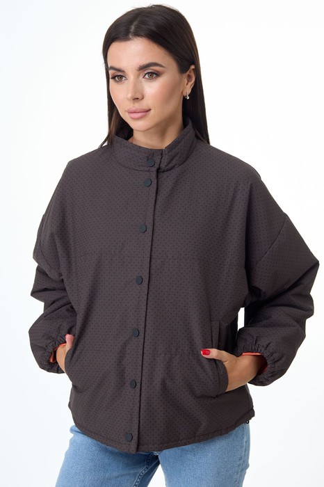 Достаточно объёмная модель с удлинённой линией плеча,широкими рукавами и воротником – стойка.