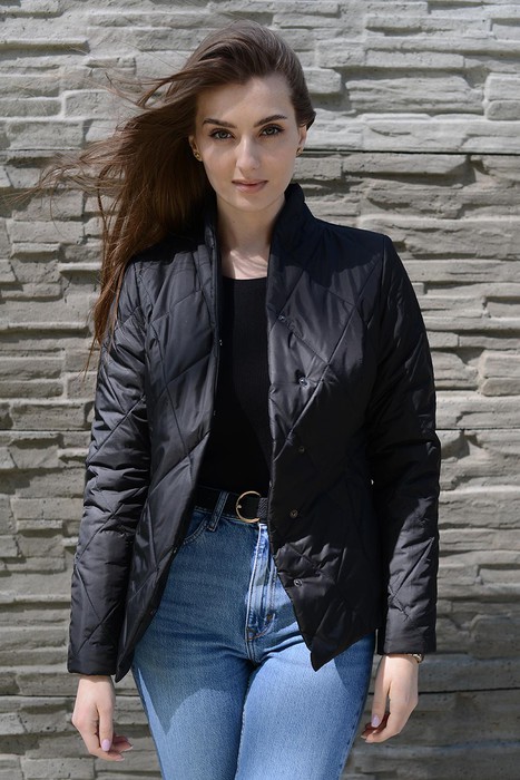 Короткая приталеная куртка с карманами в рельефах переда,с оригинальной ромбовидной стежкой и цельнокроеным воротником-стойкой, станет незаменимой вещью в гардеробе любой модницы. Длина по спинке -60см ,Длина рукава-ок.64см. . Рост 170 Р-ры: 42-52 Состав: полиэстер 100%, подкладка - полиэстер 100%, утеплитель: Air Twin Light 100 г/m2 Цвет: черный Цвет одежды на фотографиях может незначительно отличаться от оригинального.