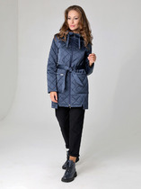 Женская куртка свободного силуэта, выполнена из экокожи высокого качества. Горловина с рубашечным воротником. Плечевые швы с патами на потайных кнопках. Центральная застёжка на металлическую молнию с защитной планкой на потайных кнопках. Спереди обработаны функциональное прорезные карманы с листочками. Двухшовные рукава со спущенной линией втачивания плеча. Спинка со средним швом. Низ собран на резинку для комфорта и регуляции размера. Куртка на подкладке.