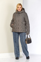 Куртка свободного кроя, длиной выше линии бедер. Спинка со средним швом. Перед с нагрудными вытачками, с прорезными карманами с листочкой. Рукава двушовные, втачные, длинные. Воротник на отрезной стойке. Застежка двубортная на петли и пуговицы. Куртка на подкладке.