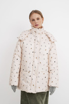 Жакет прилегающего силуэта, выполнена из эко кожи спереди и трикотажного полотна по спинке. Застёжка спереди на разъёмную молнию. По переду карманы на молниях. Воротник стойка с застёжкой на кнопку. Рукав прямой. По низу рукава пришивной браслет с фирменным логотипом. Подкладка по переду.