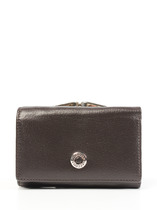 Кошелек женский выполнен из натуральной кожи. Детали: кошелек закрывается на магнитную кнопку, 2 отделения для купюр, 6 слот отделений для визиток или карт, 1 отделение с прозрачным окошком для карты или проездного, 2 кармана, 1 отделение на кнопке для монет. Фурнитура серебристого цвета. Упаковка: фирменная белая коробка.