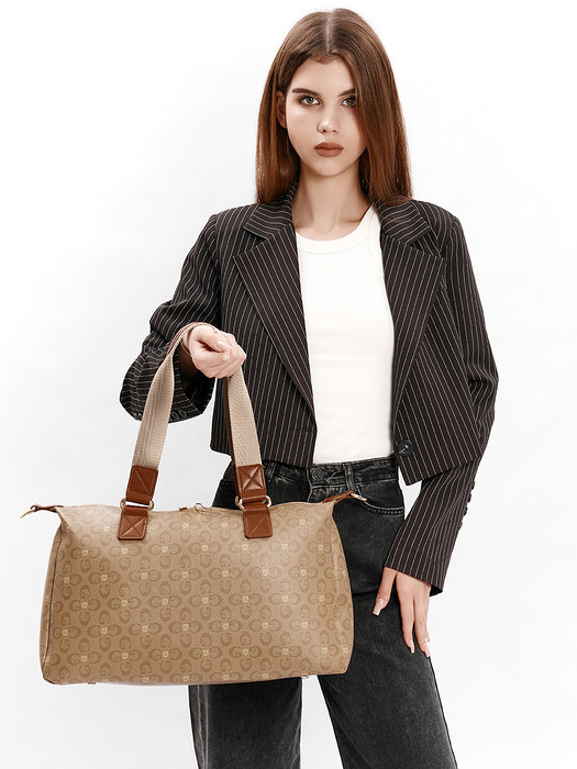 Сумка выполнена из экокожи канва. Детали: 2 ручки по 60см., 1 длинный регулируемый ремень на карабинах.  Внутри изделия: 1 отделение на молнии, 1 карман на молнии, 1 карман открытый. Снаружи изделия: 1 карман на молнии с оборотной стороны изделия. Брендированная подкладка из хлопка. Металлическая брендированная фурнитура золотистого цвета.