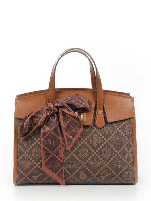 Сумка женская выполнена из экокожи канва. Детали: 2 ручки по 30см. Внутри изделия: 1 отделение на молнии,1 карман на молнии, 1 карман открытый. 1 косметичка на молнии. Брендированная подкладка из хлопка. Металлическая брендированная фурнитура золотистого цвета. В комплекте фирменный пыльник.
