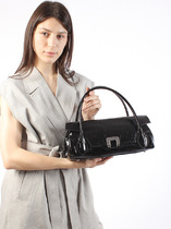 Сумка женская выполнена из натуральной лаковой кожи и гипюра. Детали: клапан на замке, 1 короткая ручка 27см., 1 регулируемая ручка до 125 см. Внутри изделия: 1 отделение, 1 карман на молнии. Металлическая брендированная фурнитура серебристого цвета. В комплекте фирменный пыльник.