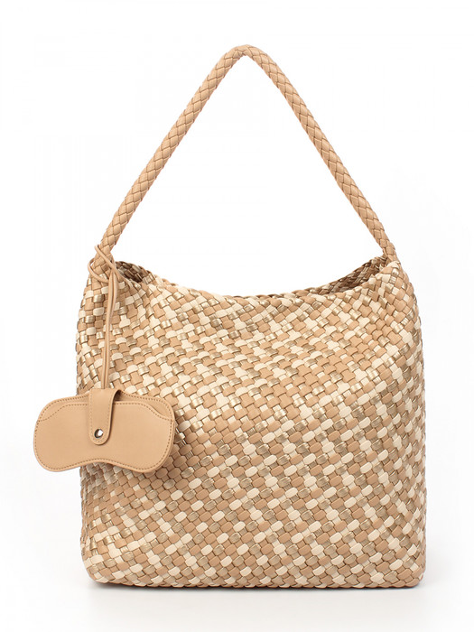 Сумка плетеная выполнена из экокожи. Детали: 1 ручка 50 см. Сумка имеет 1 отделение, закрываемое на магнит. В комплекте фирменный пыльник для хранения сумки, чехол для очков, косметичка. Внутри косметички: 1 отделение на молнии, 1 карман на молнии, 1 открытый карман. Особенности косметички: брендированная подкладка из хлопка, брендированная фурнитура серебристого цвета.