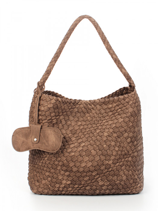 Сумка плетеная выполнена из экокожи. Детали: 1 ручка 50 см. Сумка имеет 1 отделение, закрываемое на магнит. В комплекте фирменный пыльник для хранения сумки, чехол для очков, косметичка. Внутри косметички: 1 отделение на молнии, 1 карман на молнии, 1 открытый карман. Особенности косметички: брендированная подкладка из хлопка, брендированная фурнитура серебристого цвета.