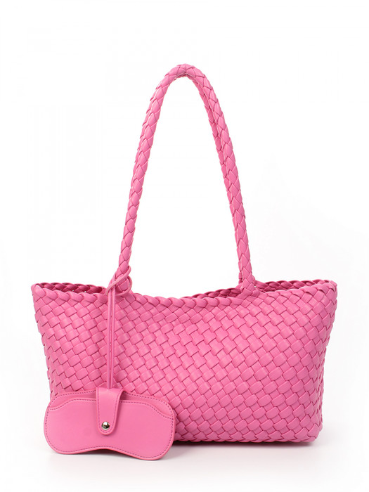 Сумка плетеная выполнена из экокожи. Детали: 2 ручки 60 см. Сумка имеет 1 отделение, закрываемое на магнит. В комплекте фирменный пыльник для хранения сумки, чехол для очков, косметичка. Внутри косметички: 1 отделение на молнии, 1 карман на молнии, 1 открытый карман. Особенности косметички: брендированная подкладка из хлопка, брендированная фурнитура серебристого цвета.
