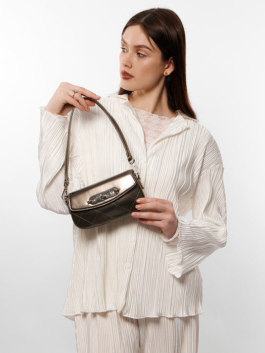 Сумка женская выполнена из экокожи. Детали: 1 короткая отстегивающаяся ручка 50 см., 1 длинный регулируемый ремешок на плечо 120 см. Внутри изделия: под клапаном на поворотном замке 1 отделение на молнии, 1 карман для документов на молнии. Брендированная подкладка из хлопка. Металлическая брендированная фурнитура серебристого цвета. В комплекте фирменный пыльник.
