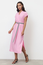 Платье неотъемлемый атрибут любого женского гардероба, а вот такое легкое, изящное платье можно обнаружить не у каждой модницы. Платье свободного покроя, без подкладки, с поясом. По боковым швам платья карманы. Рукав втачной, одношовный, с подворотом, фиксируется патой. Длина платья по среднему шву спинки в размерах размер 42- 48 составляет 99 см, в размерах 50-52 составляет 104,5 см. Длина рукава в размерах 42-48 32,5 см , 50-52 35 см.