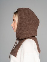 Женская двойная удлиненная шапка-колпак из мохера. Выполнена декоративной ажурной вязкой. Сбоку украшена фирменной шильдой
