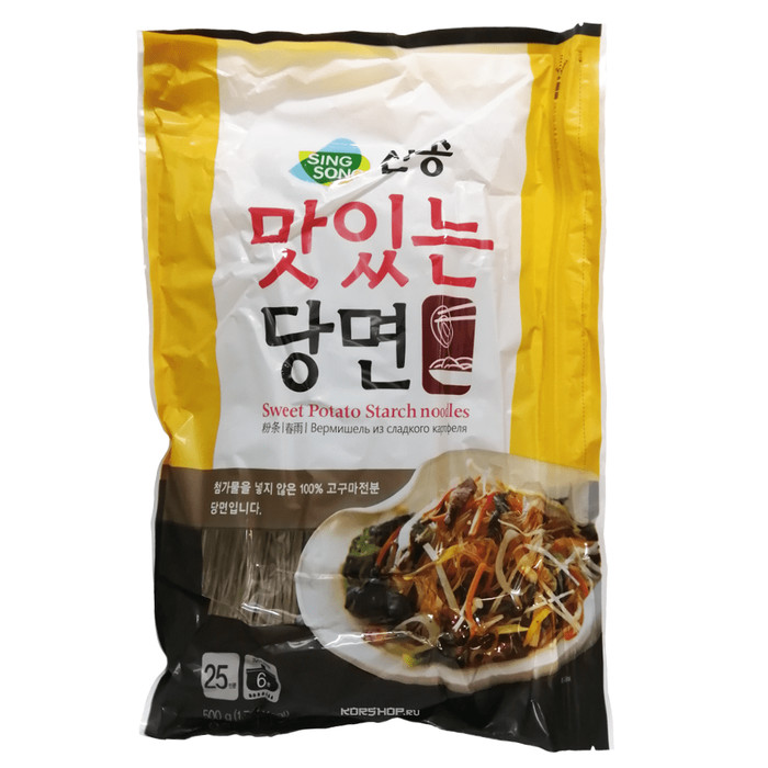 производитель СинСонг, Корея, Чапче Чапче - это обжаренные овощи, мясо с китайской крахмальной лапшой, приправленные кунжутным маслом. В зависимости от основных ингредиентов блюдо может называться: "торачжи чапче" (чапче с корнями корейского колокольчика), "пучу чапче" (чапче из душистого лука), "кочу чапче" (чапче с острым красным перцем) и "посот чапче" (грибное чапче). Чапче - уникальное корейское блюдо, без которого не обходится ни одно праздничное застолье. Ингредиенты 100 гр. постной говядины, 80 гр грибов (лучше всего подходят вешенки), 50 гр.лука, 50 гр. огурцов, 50 гр. моркови, 50 гр. болгарского перца, 1 яйцо, 80 гр. китайской крахмальной лапши, 1 стол. ложка очищенных кедровых орешков, соевый соус, соль, кунжутное масло, сахар. Состав подливы для мяса и грибов: Способ приготовления 1. а) Нарежьте говядину небольшими тонкими полосками; б) Грибы вымойте, окатите кипятком, затем порежьте соломкой; в) Смешайте продукты, необходимые для приготовления подливы, добавьте подливу в мясо и грибы. Затем отдельно пожарьте мясо и грибы; 2. Во время жарки в мясо добавьте нарезан.тонкими полосками лук; 3. а) Нарежьте огурец тонкими полосками, длиной 5 см, посолите и оставьте на 10 мин. Затем нарезанные огурцы отожмите и обжарьте; б) Нарежьте морковь на полоски по 5 см, окатите кипятком и обжарьте; 4.Болгарский перец нарежьте тонкими полосками, затем немного обжарьте; 5. Отделите яичный белок от желтка и взбейте их раздельно. Вылейте желток на раскаленную сковороду, поджарьте в виде тонкой лепешки. Лепешку разрежьте на тонкие полоски. Также поджарьте лепешку из яичного белка; 6. Отварите китайскую крахмальную лапшу, разрежьте ее и добавьте кунжутное масло и соевый соус; 7. Смешайте овощи, мясо и грибы с китайской лапшой, приправьте кунжутным маслом, соевым соусом, сахаром по вкусу. Выложите на тарелку, украсьте полосками яичного белка и желтка и посыпьте кедровыми орешками.