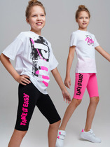 Легинсы прилегающего силуэта с цельнокроенным поясом на резиновой тесьме. Вдоль боковых линий настрочена декоративная тесьма. В качестве дополнительного декора использованы брендовые этикетки и флажки