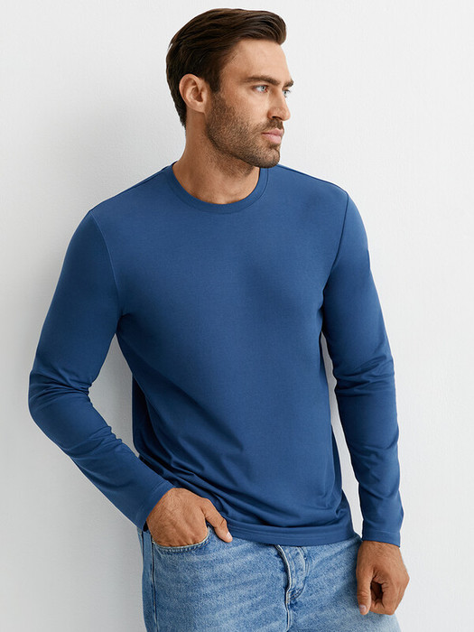 Мужской лонгслив прямого кроя с длинными рукавами и круглым вырезом горловины. Изготовлен из тактильно приятного хлопка с эластаном, который отлично пропускает воздух, приятно ощущается на теле и подходит даже для самой чувствительной кожи.
