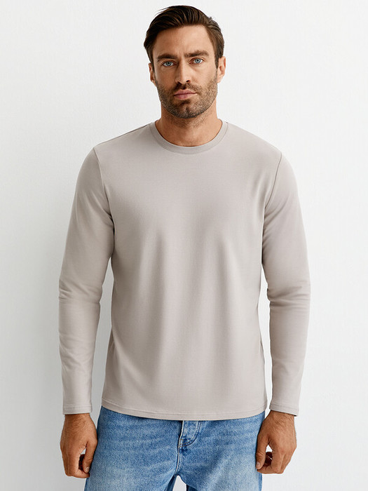 Мужской лонгслив прямого кроя с длинными рукавами и круглым вырезом горловины. Изготовлен из тактильно приятного хлопка с эластаном, который отлично пропускает воздух, приятно ощущается на теле и подходит даже для самой чувствительной кожи.