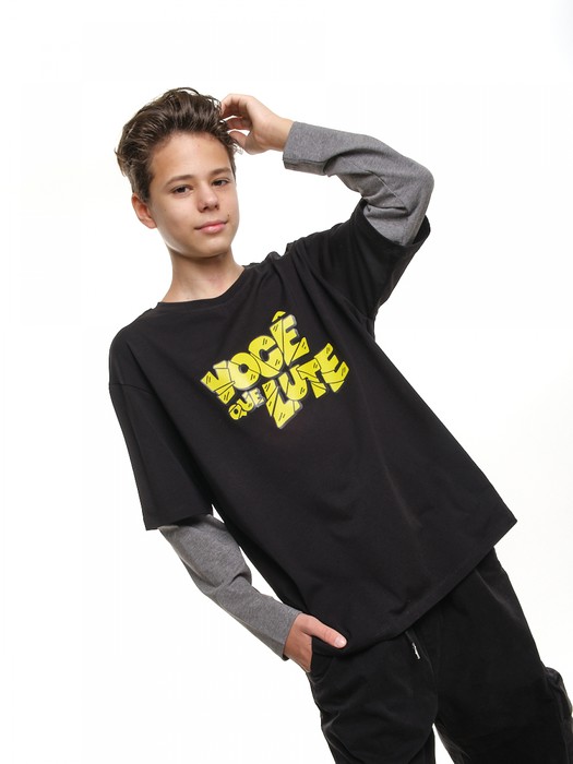 Совместные покупки Сургут Детская одежда Футболки, майки — Mini Maxi Лонгслив с принтом (128-146см) 22-0229-2(3) черный/серый