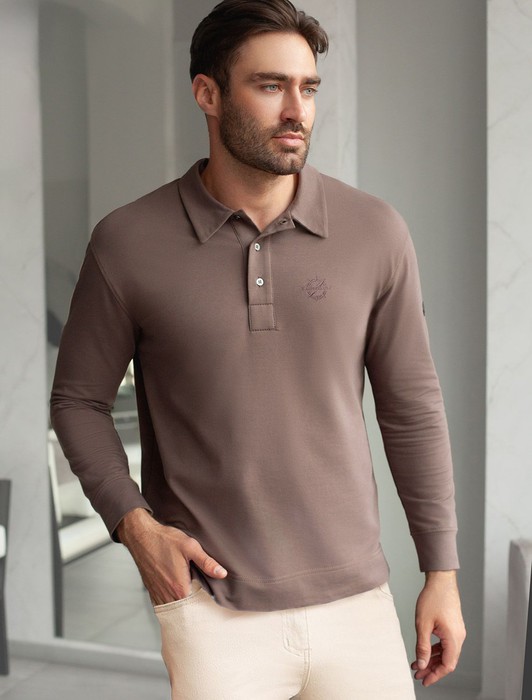 Состав: 95%Хлопок 5%ПУ Плотность: 240 Г/м2Стильный лонгслив кофейного цвета с воротником поло выполнен из премиального хлопка в сочетании с эластаном . Натуральная ткань обеспечивает легкость, воздухопроницаемость и приятные тактильные ощущения даже когда жарко, позволяет не перегреваться и поддерживает комфортный микроклимат в течение всего дня. Удобный отложной воротник на аккуратных пуговицах делает образ современным и стильным, а длинный рукав защищает руки при ветреной погоде. Поло хорошо садится по фигуре благодаря добавлению эластичных волокон — такой вариант подходит для мужчин любого роста и размеров, не стесняет движений и создает ощущение свободы и легкости.