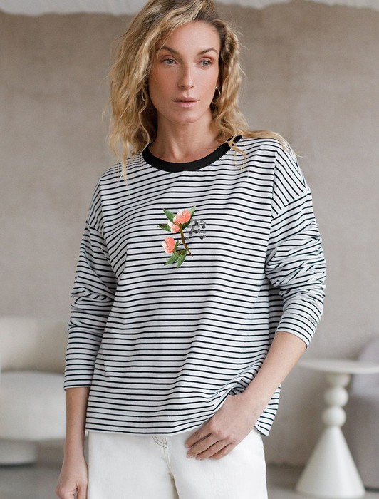 Совместные покупки Сургут Женская одежда Футболки — Лонгслив в полоску с принтом из премиального хлопка с эластаном