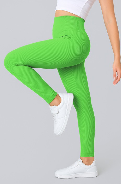 Однотонные лосины лаймового цвета имеют широкий пояс на резинке, который позволяет двигаться уверенно: не придется все время их поправлять и подтягивать. Все швы аккуратно обработаны, детские лосины хорошо облегают и не стесняют движений.